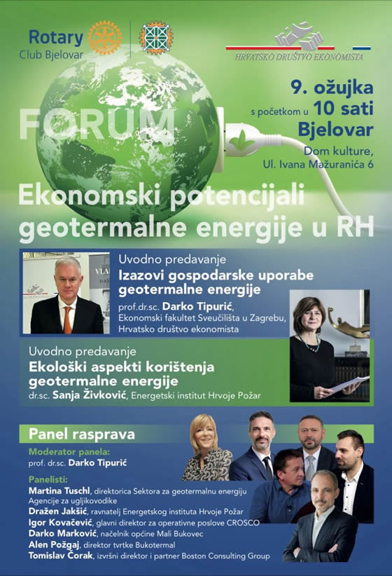 Pozivamo vas na forum pod nazivom „Ekonomski potencijali geotermalne energije u Republici Hrvatskoj” u organizaciji Hrvatskog društva ekonomista i Rotary