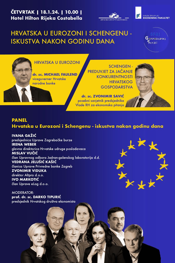 Hrvatsko društvo ekonomista i Gospodarski savjet Ekonomskog fakulteta Sveučilišta u Rijeci organiziraju skup pod nazivom “Hrvatska u Eurozoni i Schengenu