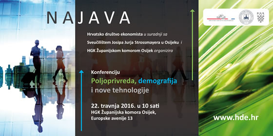Znanstveno-stručna Konferencija i javna stručna rasprava na temu “Poljoprivreda, demografija i nove tehnologije” Organizator: Hrvatsko društvo ekonomista u suradnji sa Sveučilištem Josipa